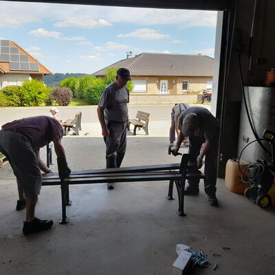 Mit großem Engagement kümmert sich die Altersabteilung um die Instandhaltung wichtiger Einrichtungen in unserer Gemeinde. Dazu gehört die regelmäßige Pflege und Wartung der Geländer am Üxheimer Wasserfall sowie die allgemeine Landschaftspflege beliebter lokaler Ausflugsziele. Auch die Spielplätze im Ort profitieren von der aufmerksamen Betreuung - ob Klettergerüst, Rutschen oder andere Spielgeräte, die Sicherheit unserer Kinder steht an erster Stelle. Darüber hinaus wird die Wegbeschilderung in und um Üxheim instand gehalten und bei Bedarf erneuert, damit Einheimische und Gäste stets gut orientiert sind. Diese Arbeiten tragen wesentlich zur Lebensqualität und zum gepflegten Erscheinungsbild unserer Gemeinde bei.